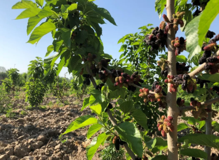 风中时不时弥漫出一股股清香绵延的味道。细细品味后,漫步园中,不自觉的被它勾着鼻子走,至园区深处,满地紫红,盖为桑葚熟矣,抬头望去果不其然,个大饱满的桑葚枝头满挂,好不喜人。